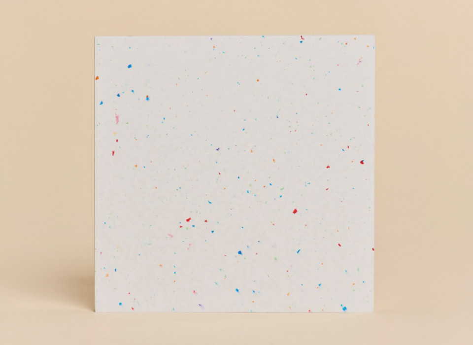 El panel viene rectificado en la medida, sin pulir y con cantos rectos. El material puede venir con 2 a 3mm de variabilidad en el espesor. El material puede presentar hasta un 5% de porosidad o texturas en su superficie. El material tiene solo una cara útil. Los porcentajes de cada color puede variar levemente de una partida en otra al ser un material reciclado.