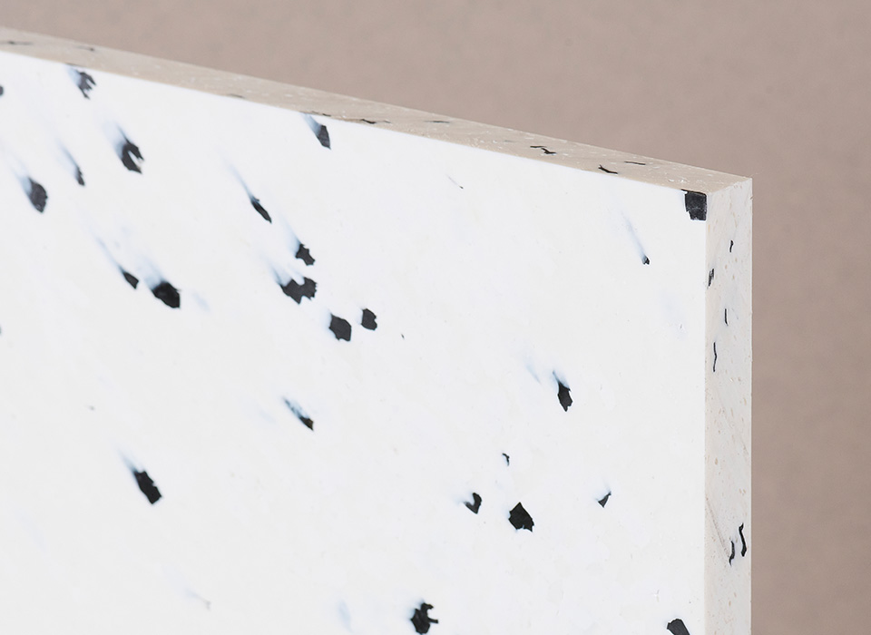 El panel viene rectificado en la medida, sin pulir y con cantos rectos. El material puede venir con 2 a 3mm de variabilidad en el espesor. El material puede presentar hasta un 5% de porosidad o texturas en su superficie. El material tiene solo una cara útil. Los porcentajes de cada color puede variar levemente de una partida en otra al ser un material reciclado.