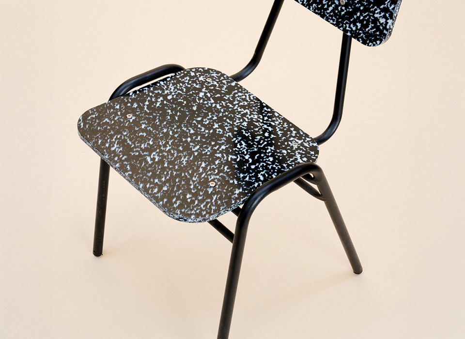 Asiento y respaldo de panel simple es una sola pieza de material reciclado fluxPS, con la superficie pulida mate, cantos redondeados. Estructura metálica y electropintada.